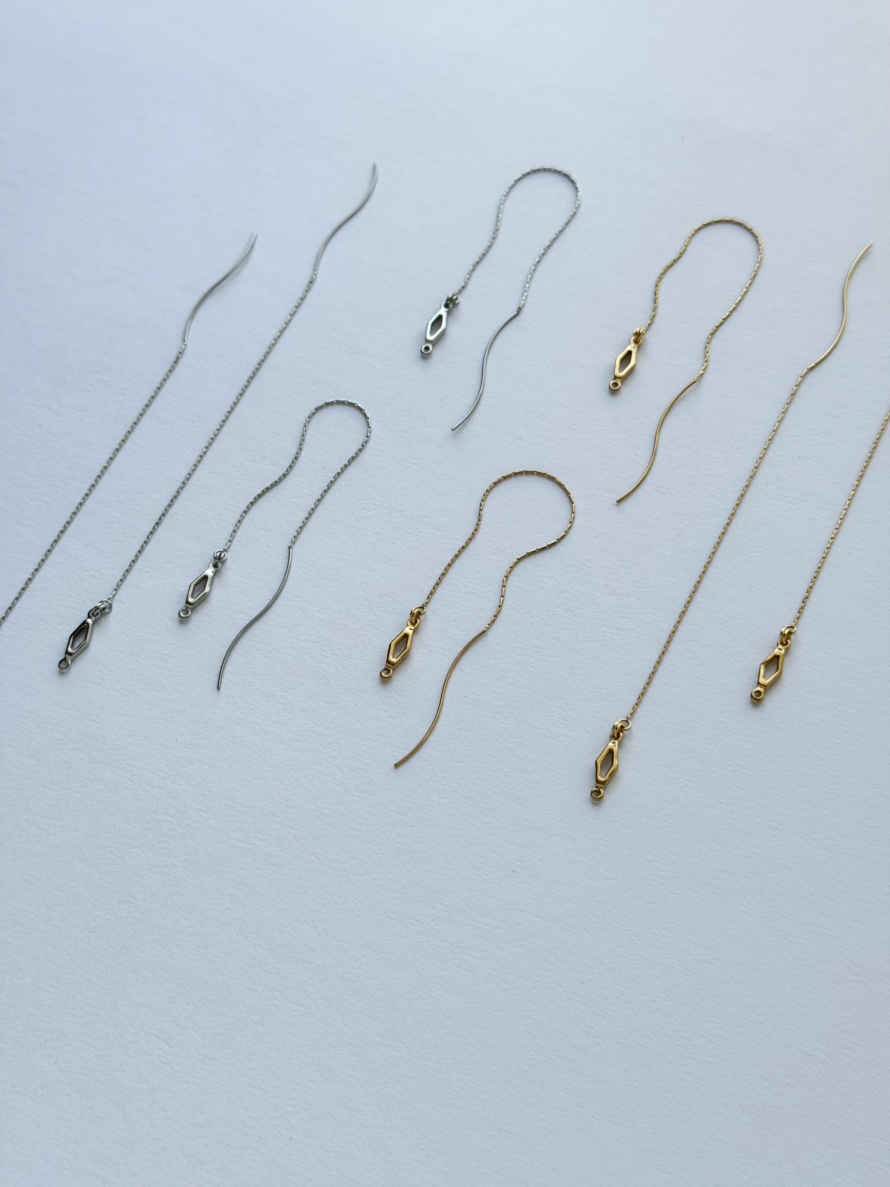 ひし形のチャームが軽やかに揺れるアメリカンピアス。