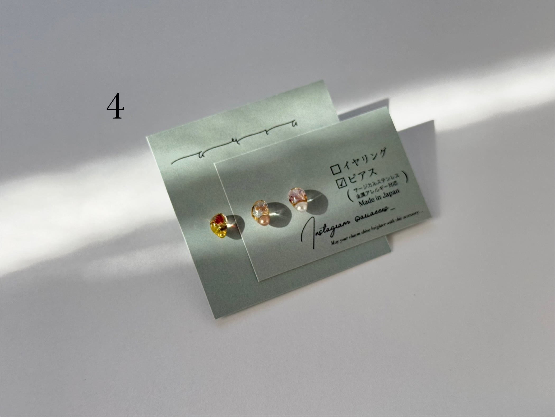 琉球ガラスやドライフラワー、手作業でペイントした水彩デザインを使用した小粒の3セットです♪